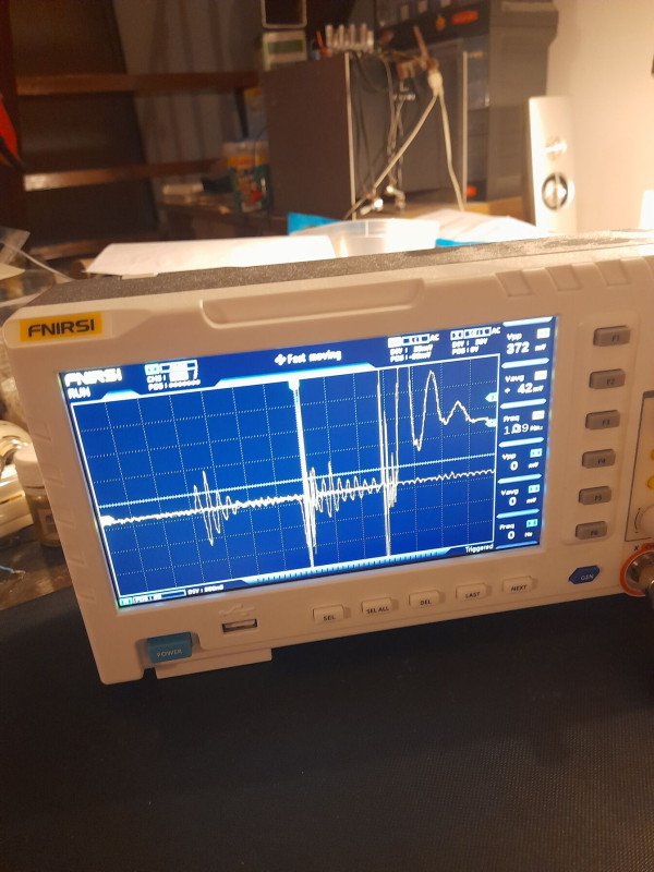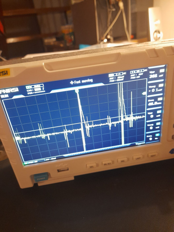 A képeket egyre nagyobb felbontással készítettem, egyre jobban látható mi van a tápfeszültségen a kapcsolások pillanatában.