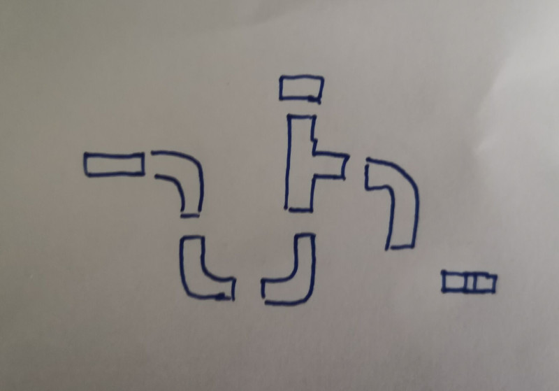 Egy menetes egyenes köztagból, T-idomból és 90°-os könyökökből egy bűzzáróval kombinált túlfolyót hoztunk létre.