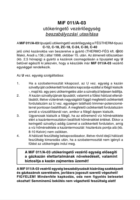 Tehát neked a ezt a funkciót kellene pótolni a jó működéshez. Ezt a vezérlést a kazánon belül kell megoldani, csak a kazán saját belső szivattyújával fog működni.