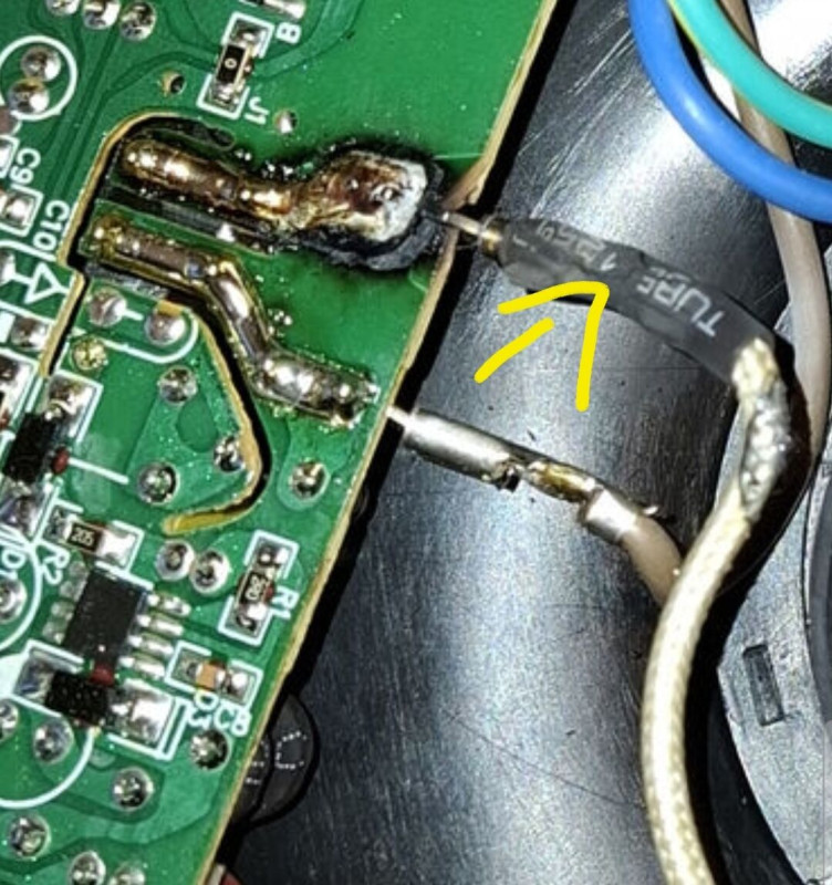 A szenes rész nem tűnik vészesnek, mivel nem képez olyan áthidalást, ahol áram indulhatna el rajta, nem kívánatos irányba. De gravírozó eszközzel vagy késsel fel lehet tisztítani, utána a kötést pótolni, huzalt ráforrasztva.