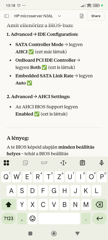 N36L- kölcsön volt adva, ott évekig kikapcsolva pihent. Most szerettem volna NASnak használni. Van 1 SSD fent és 2 hdd a keretekben. Fent az "5." vagy odd meghajto helyén az SSDt látja biosban, semelyik másik hddt a keretekben nem. Próbából a fenti SSD helyére bepróbáltam a hddket. Így, egyesével, ott làtja őket a gép.. az alaplapon kihúztam, visszadugtam a kábelt, ugyanaz