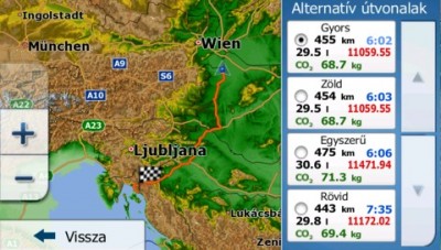 NAVTEQ térkép esetében, az alábbi alternatív útvonal kombinációk lettek: