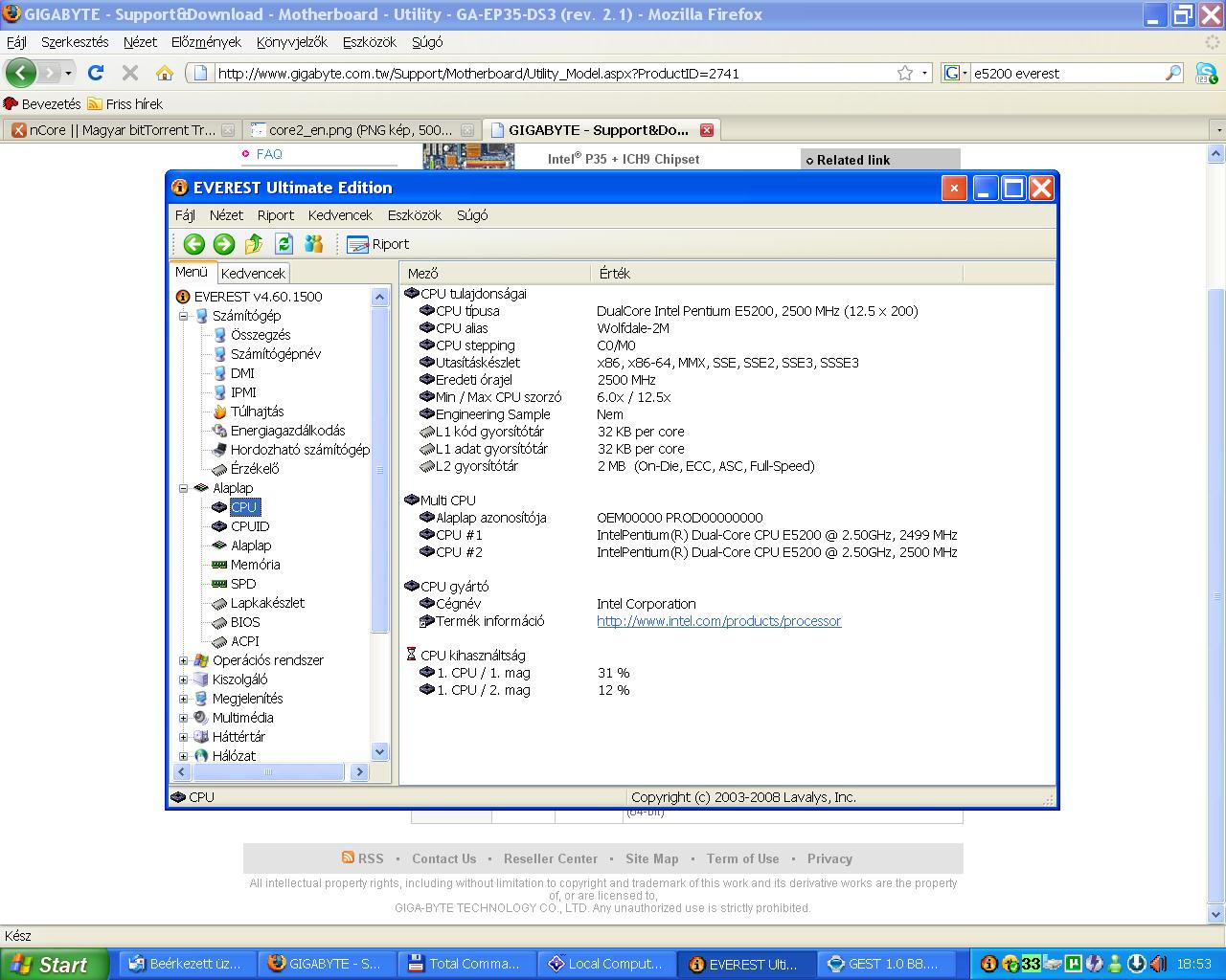CPU #2 IntelPentium(R) Dual-Core CPU E5200 @ 2.50GHz, 3750 MHzÉs az EasyTune5 pro is ezt irja 3750Mhz