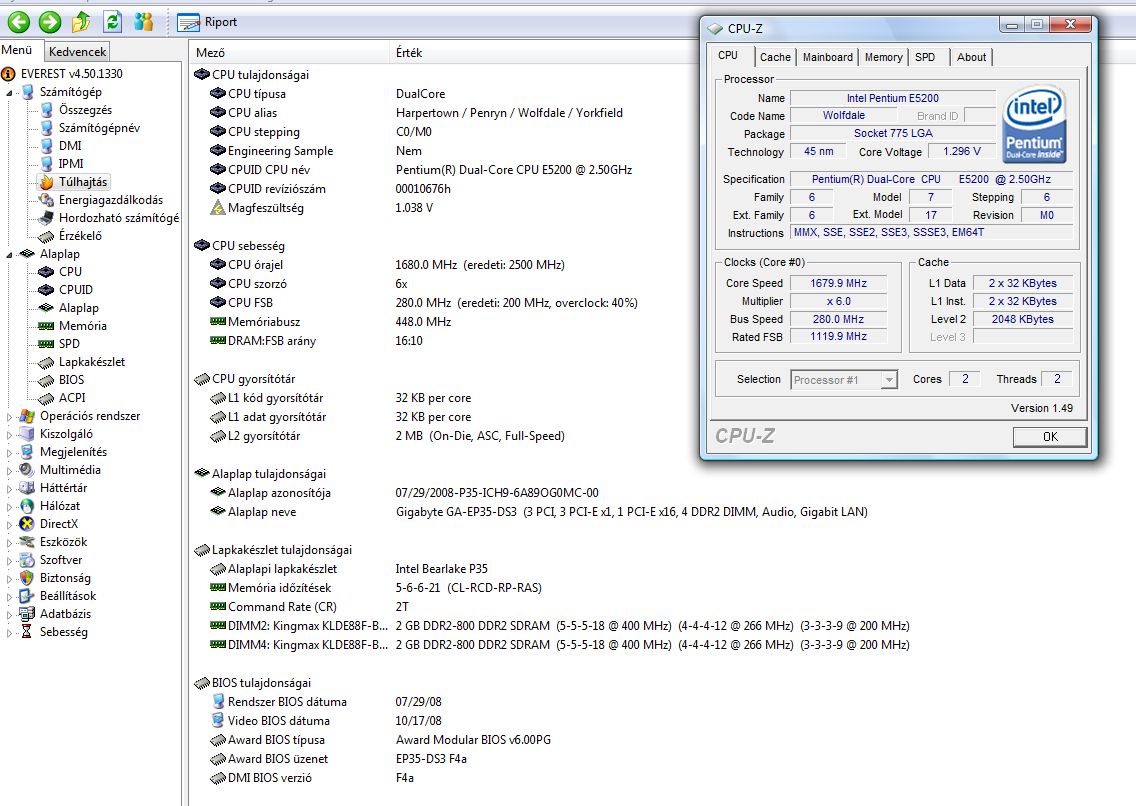 Én is nemrégen cseréltem procit, korábban egy G31-es deszkában 2-ről 3 Ghzre húzott E2180-om volt , amit lecseréltem E5200-ra. az alaplapom Giga P35-DS3. Húzva 3,5 Ghz-en stabilan megy de érzésem szerint lehetne még csikarni ki belőle némi pluszt. 2 db 2 gigás Kingmax DDR800 modult használok, semmilyen alkatrésznek nem adtam plusz feszt, igy van 12,5x280-om, a RAM olyankor 3-mal van 840-on. Hűtőnek Hyper TX2 van rajta, 3,5-en terhelve (videókoódolás, Orthos, Intel Burn test nem ment 50 fölé.