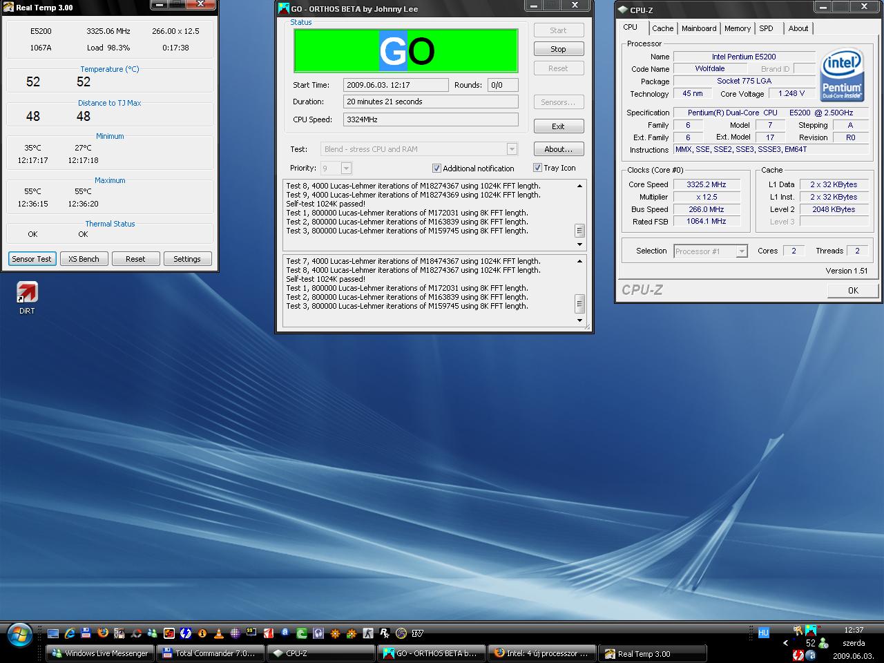 Aztán persze próbáltam húzni az FSB-t magasabbb szórzóval, de nem ment 3,15 ghz-nél tovább (blue screen).