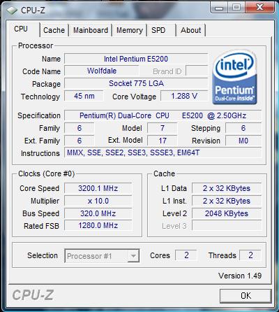 Az E5200 az valamelyik nagyobb 45nm-es CPU selejtes darabja. Lehet hogy E8000, vagy E6xxx 45nm-es verziójából. Úgy tudom legalább is.