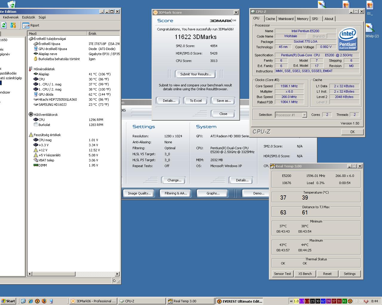 volt 2-3 hét amíg b@szta a csőrömet, hogy nincs rendes gépem, ráadásul ez a második E5200 amit hajtok. Az előző nem melegedett így, alapon 30C körül, de 12,5x266-hoz már 1,3Volt kelett neki, hát fájó szívvel eladtam.