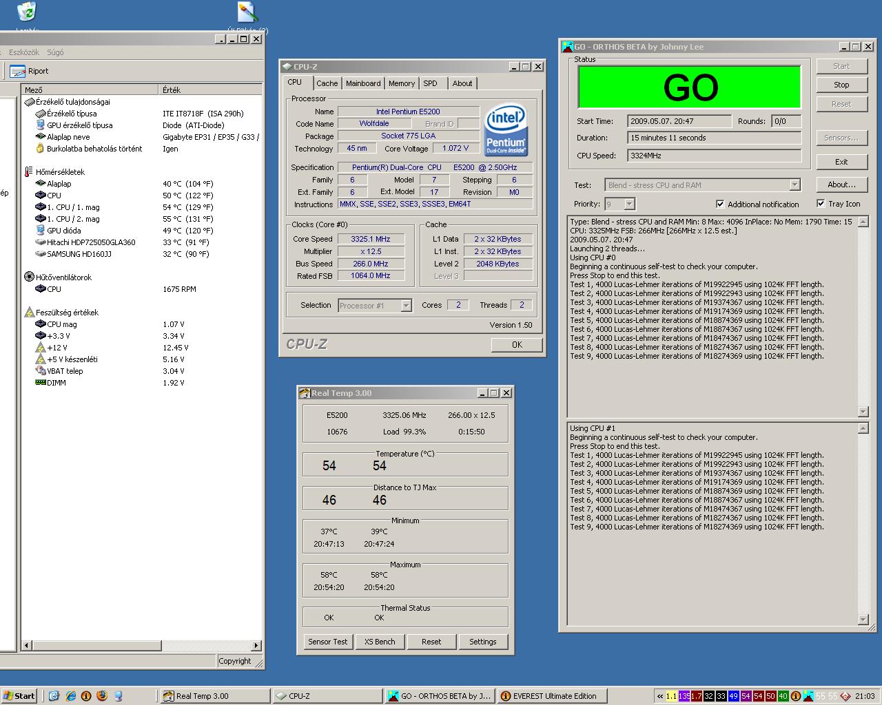 Dobj egy screent cpuz illetve hőmérséklet adatokról, pl everest