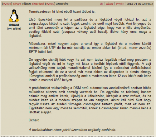 Kábelezést átnézted? Ha egyszerű telefonkábel van, vagy az eggyel jobb PVC, akkor érdemes lenne cserélni a lakásba bejövő ponttól UTP-re.