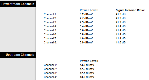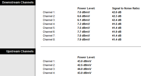 Channel 8: 7.2 dBmV 41.3 dBUpstream Channels