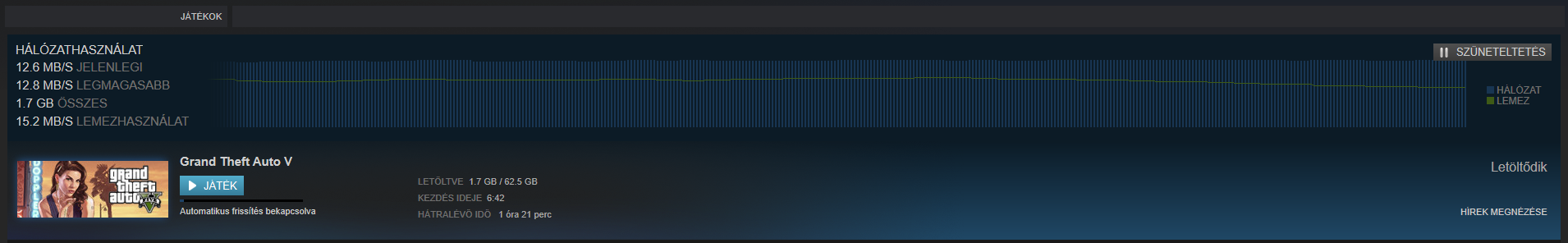 Azt még hozzátenném, hogy magam is Telekomról váltottam (20-as VDSL2 NetMánia M, ami gyakorlatban Speedtesten 23-at futott), viszont Steamen kb annyival jött amint amennyi papíron volt. Na ha még mindig ott lennék, azon túl, hogy ugyanúgy 17-18 K-t fizetnék havonta a komplett minicsomagokkal tűzdelt csomagért, most kb 410 percig várhatnék ameddig letöltődik