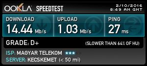 Egyébként még egy apró megjegyzés: a rézdróton is érhetnél el nagyobb sebességet, ha lenne a közelben VDSL2 központ. Anno nekem ADSL2+-on 20 közelében sem nagyon volt a netem - oké csúcson volt 16 Mbps is -, de aztán a T kivezette a 15-ös csomagot a 20-ast meg be, na onnantól a szerelők nem tudtak többet kicsikarni mint 11 Mbps, amit egyedi FW-rel a D-Link 321B modemem segítségével feltornáztam 13,3 körülire, aztán az x-edik szerelő mondta, hogy de éppen már elérhető a VDSL2. Na abból a 20-as csomag ment is 20-21,6 körül stabilan, Speedtesten meg 23 Mbps jött ki.