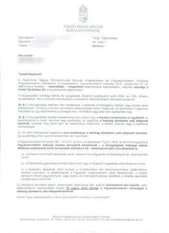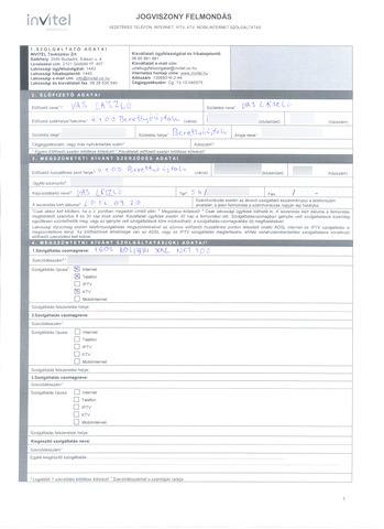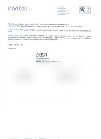 Inviteltől kapott vagy az Invitel számára küldött hivatalos íratok: