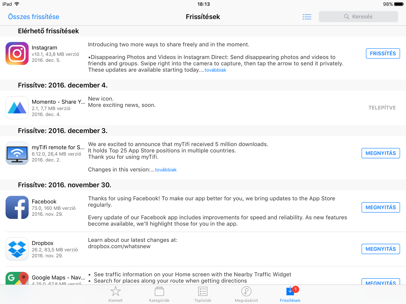 Mi az a Momento? Ma frissült AppStore-ban nem nem tudom megnyitni.