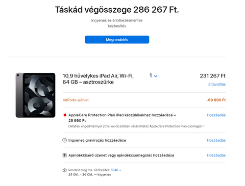 Wow, elméletileg tegnap lejárt az Apple AirPods kedvezmény, de még engedi megrendelni!