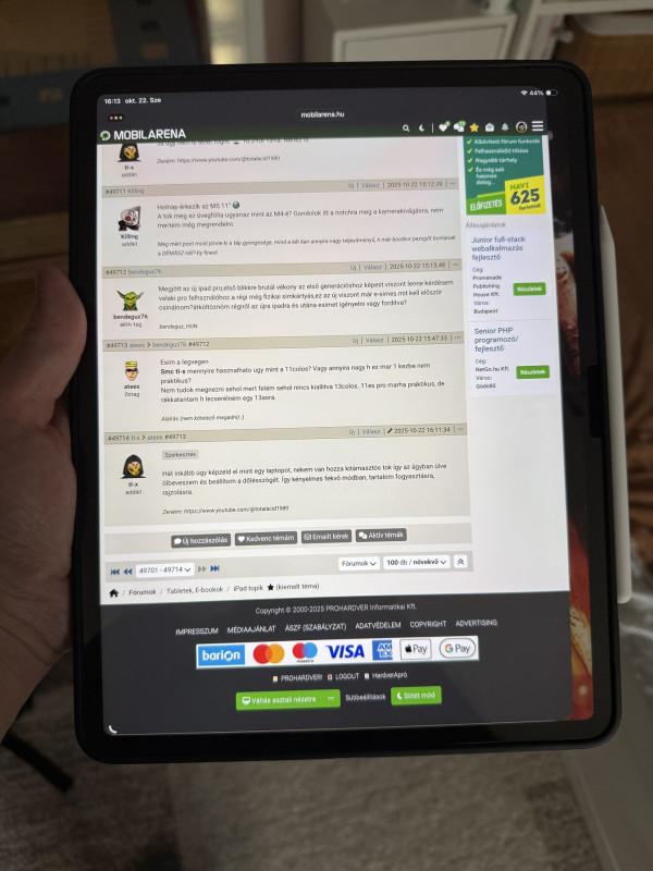 Van köztünk olyan aki 11colos ipadról 13ra váltott? Mennyire kényelmetlen mondjuk az 1 kezes fogas?