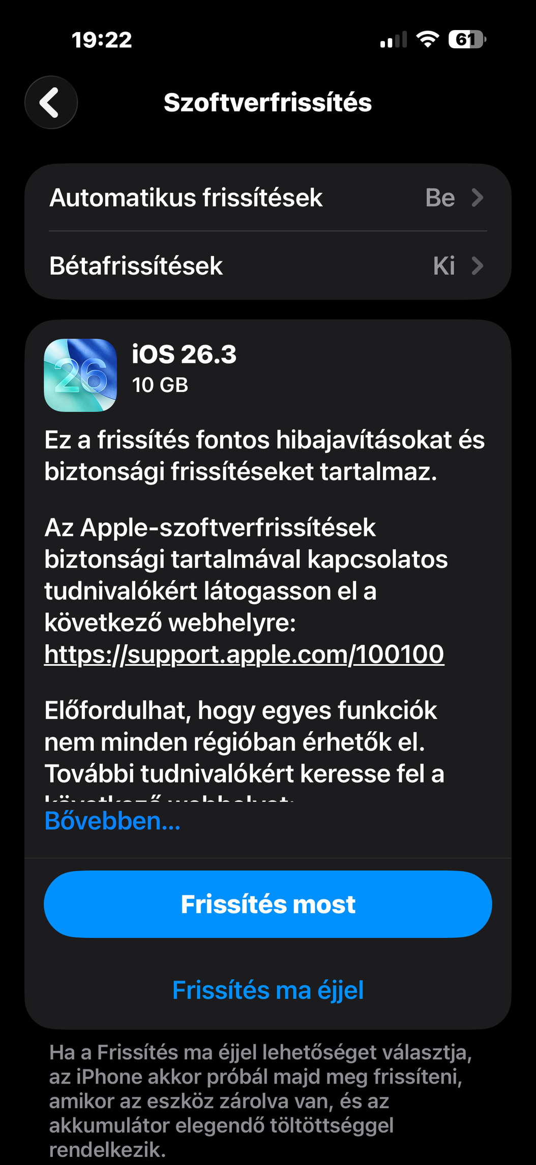Lehet már tölteni a 26.3-at. Már nagyon RCS üzenetküldenék…