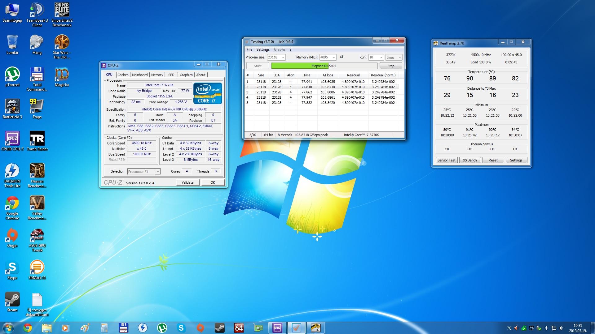Próbálgattam a 3570K is,de 4,5 ig jutottam: 1,24V és a legmelegebb mag,78 fokos volt.(LinX) Az sajnos nem elég tuning barát.(malay) De a gyereknek bőven jó.