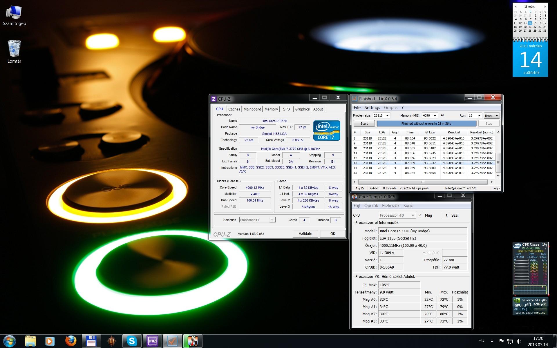 UI: sima 3570 pedig gyári értéken 3.80 Ghz. Tehát +200 MHz ingyen (38->40 szorzó), +200 MHz BCLK (kerek 105 MHz) és ez is 4.20 GHz (5 ezer forinttal olcsóbban, mint a 3570K). Ha ilyen "sz*rok" a mostani K-s procik, akkor miről is beszélünk?