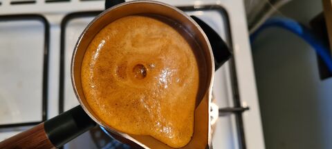 18 gramm őrleményből lett 43 gramm itókám. Olyan 4,5 percnél indul meg a dolog, ez az ideális tartományba esik (4-6 percet írnak hideg kotyesszal). Amikor elkezd intenzívvé válni a rotyogás, akkor már lehet tudni, hogy hamarosan megindul az arany, úgyhogy érdemes megragadni a gáztűzhely tekerőjét, ezzel tök jól lehet szabályozni a lefolyás sebességét. Indukcióson ez nem tudom, hogy mennyire működik jól, gondolom ott is lehet azonnalni változást előidézni az elv miatt, egyedül a rezsó lehet rossz ebből a szempontból.