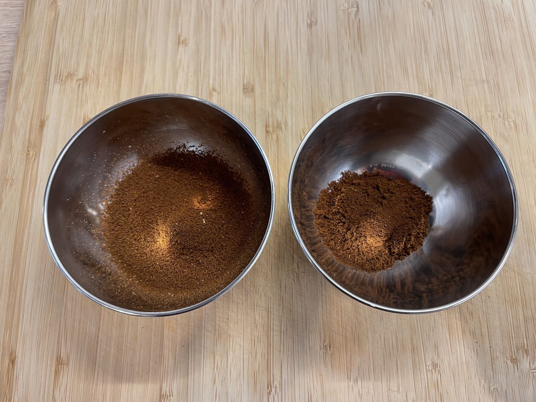 Livi(bal) vs Kinu őrlemény. Livié így jött ki a darálóból, Kinunál az átöntéskor azért szétoszlott, de látszik a különbség. Vakon ránézésre én nem tudnám megmondani melyik lenne jobb ízre, de “szebb” a Livié.