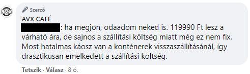 Tudom, hogy ellenszenvet valtok ki, hogy vedem, de nem egy leadott megrendelesben modositott arat, hanem facebook kommentjeiben vart elozetes ar becslese valtozott. Es nem is 30k-rol tolta fel 120ra, vagy 240rol akciozva lengette be 100nak.