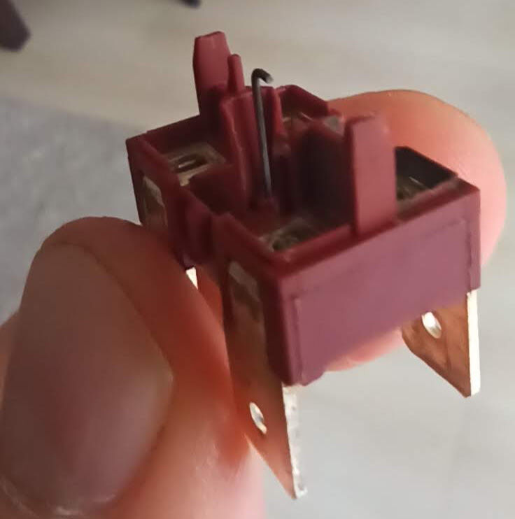 köszönöm szépen mindenkinek a gomb tippeket, délután szétszedtem a kapcsolót, szerencsére nem egy összetett dolog. most úgy fest működik, de a belsejét jobban járok, ha kicserélem. érdekes és ötletes módon kapcsol maga a gomb, azt kell mondjam : ) ezt a hülye kis pöcköt kellett úgy megegyengetnem, hogy pont a megfelelő utat járja be és a rugó is akkora erőt fejtsen ki, hogy a pöcök beakadjon a helyére.