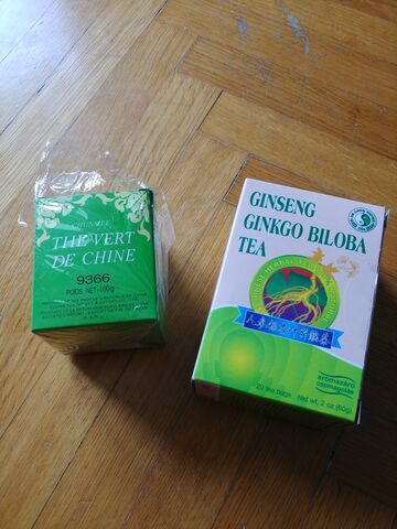 Illetve DM-ben lehet 60g kiszerelésben kapni ginsenges (nem a gingko, az nem túl finom) zöldet, 1200Ft. Azt lehet majdnem forrásban lévő vízbe, 15 percre áztatni. Van egy nagyon jellegzetes íze, amit én szeretek. -
