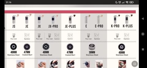Mondjuk ez nem teljesen szerencsés táblázat. A többiről nem tudom pontosan, de a K-Plus-t 8.0 állásban tesztelték, ami nekem kb. a french press (v60 6.0-7.6 között megy adagtól függően, kotyogósba meg aeropressbe meg 4.5 - 5.5). Szóval önmagában nem megyek sokra a számokkal, ha meg valaki espresso-ra akarja, akkor főleg nem megy vele semmire. Ha a JX / JS és társait is hasonló beállítással tesztelték, akkor szerintem nem sok értelme van ezt nézegetni.