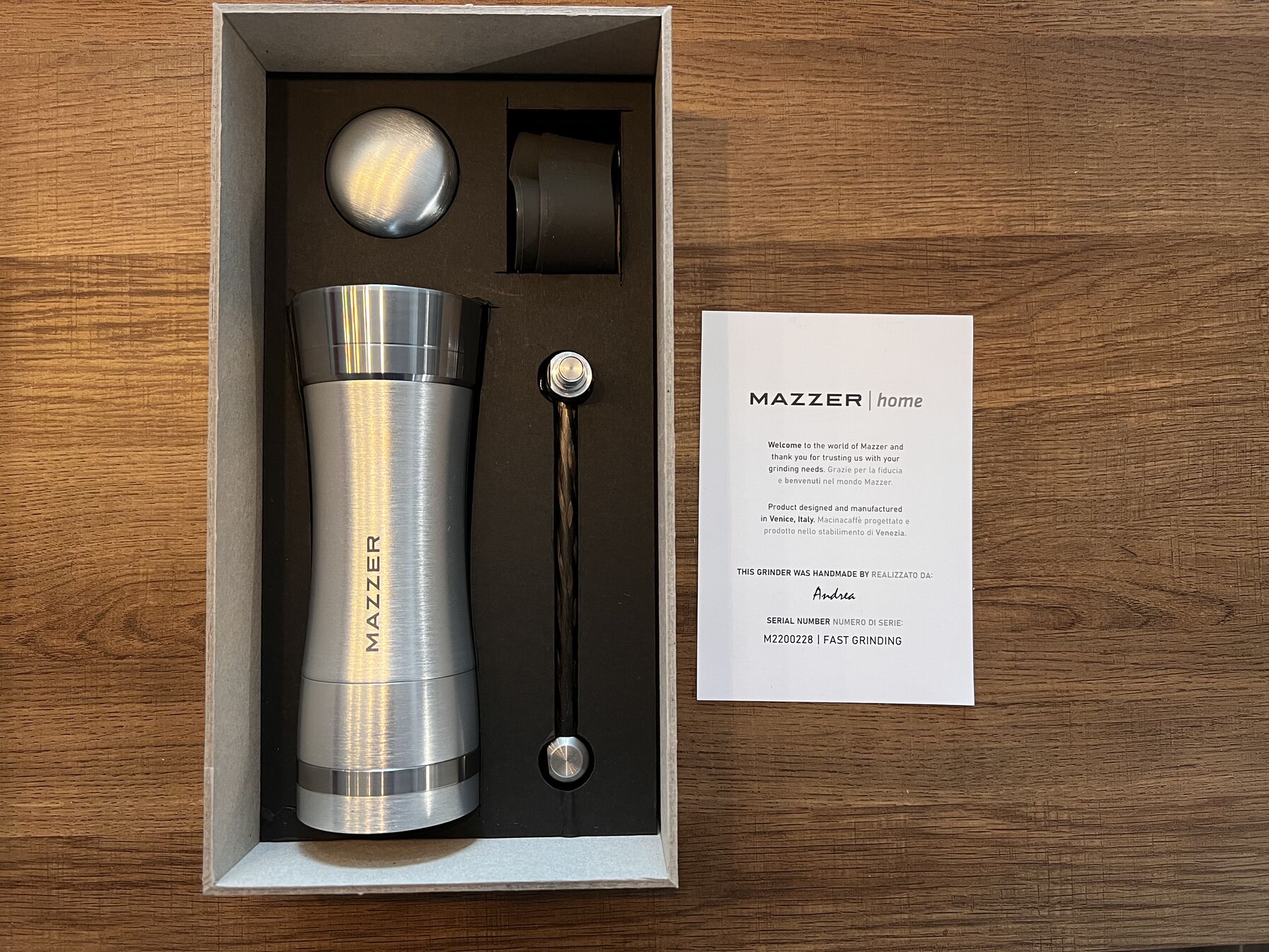 A gépet egy felújított Mazzer Mestre Fiorenzato F64evo késsel és egy felújítás alatt álló Mazzer Major 151C késsel szolgálná ki.
