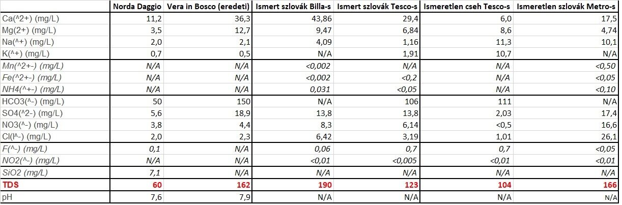 Az imént vagy másfél órát böngésztem a szlovák és cseh oldalakat (Lidl közel lenne, Tesco/Metro/Kaufland nekem csak távol), de hiába kerestem rá a “dojčenská voda” vagy “kojenecká voda”, “znížený obsah mineralov“ stb. kifejezésekre, alapvetően csak Csehországon belül találtam olyan vizet, ami emberi árú, s legalább a teljes ásványi anyag tartalma rendben van.