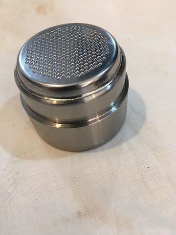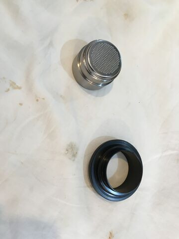 A gyári műanyag tamper vicc kategória, de a fém se sokkal jobb. Rugós tampert csináltam mellé, tökéletesen párhuzamosra lehet vele tömöríteni. Kosárból is van saját IMS és hozzá 200 mikronos felső szűrőm.