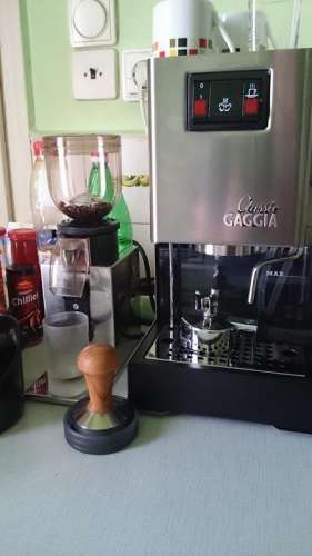 Egyszer láttam valahol egy Gaggia Baby Primot ilyen színben. Nagyon tetszett, ezért lett végül ilyen. Szerencsém is volt, mert a festő akinél csináltattam nem rendelkezett túl nagy színválasztékkal. De pont előtte rendeltek tőle egy nagy munkát ilyen színben és maradt belőle pár kiló por. :-) -