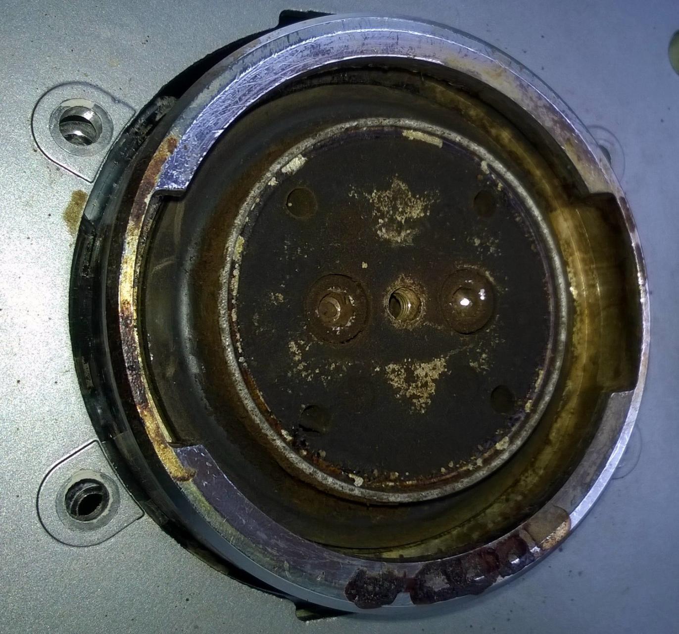 Tegnap este már hideg zsíroldót kapott, reggel meg már csak átmostam kicsit és visszaraktam mindent a gépbe. A tömítőgyűrűt megfordítva visszahelyeztem és visszacsavartam a vízterítő blokkot meg a felső szűrőt. Ezután bekapcsoltam a gépet és átengedtem némi vizet rajta (a gőzkaron keresztül is). Csináltam egy próbafőzetet, de sajnos továbbra is engedte a vizet.