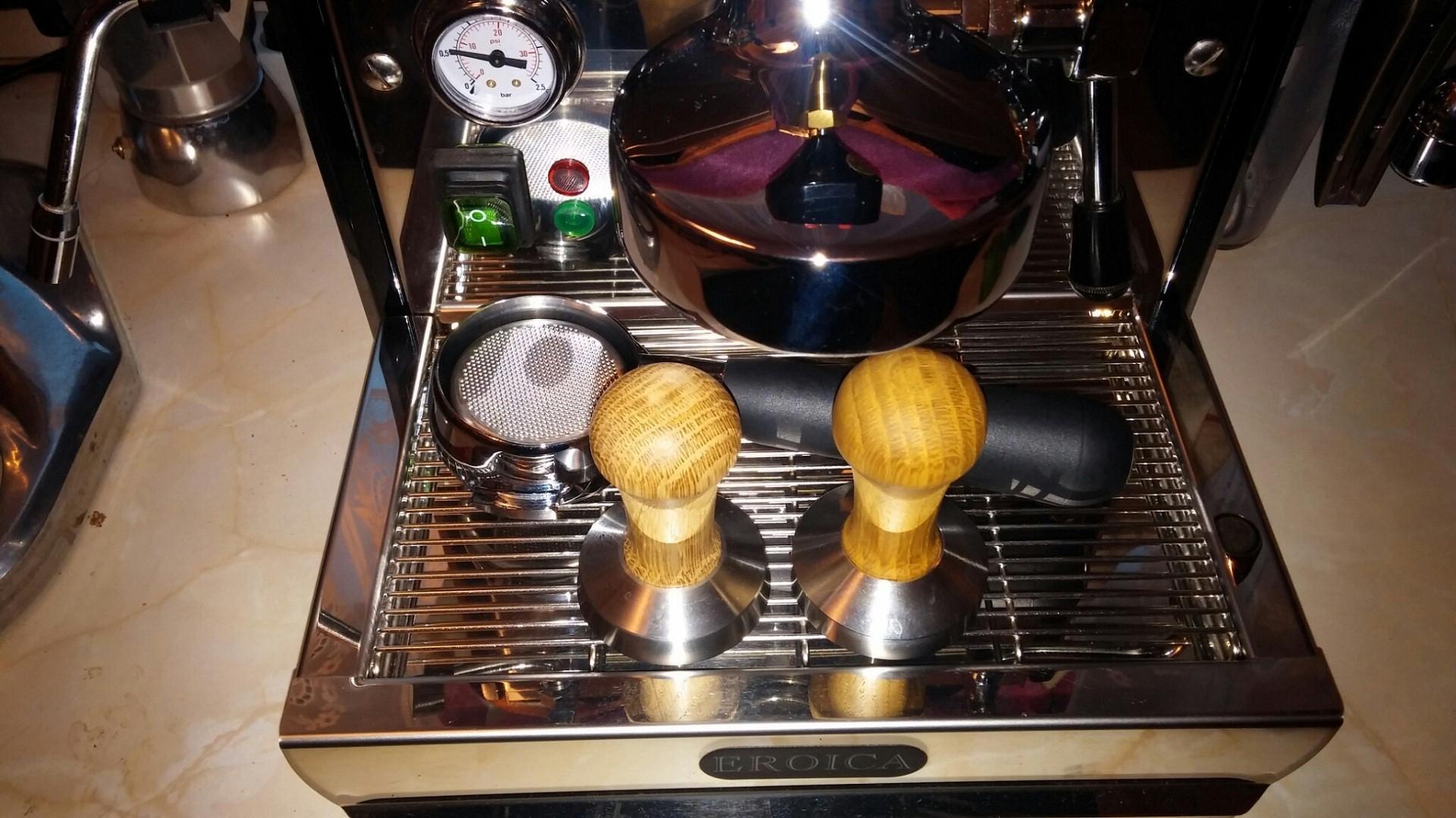 Egyszer a nyomás kicsit elforgatta a kart, azóta kipróbáltam , hogy megtartom kézzel és így is csöpögött kicsit, de csak pár csepp az elején. Ezzel a módszerrel sikerült egy majdnem normálisat csapolnom 12 gramm kávéból. Bár azon meg nem lett crema.