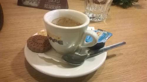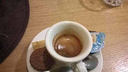 Eszpresszó, keksz, tejszín, víz és 3 csík cukor. Csilliárdos géppark, egy nagy La Spaziale gép és két ugyanilyen őrlő, gyenge közepes kávé. Enyhén citrusos, narancsos, sav nélküli testetlen, enyhén égett, olyan ronda volt, hogy az ilyet otthon kiöntöm. Ha tényleg ez Szeged legjobb kávéja, akkor itt nagy baj van. -