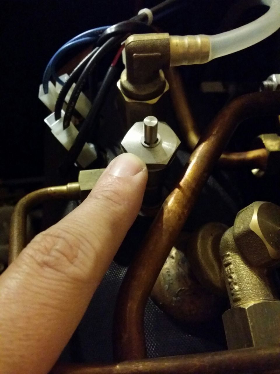 Ahogy a PID kijelzőjén az érték eléri a 100 fokot (a Giotto ugye a kazánvíz hőmérséklethez adja a PID értéket és nem az öntözővíz hőmérséklethez - aztán van egy táblázat amiből ki lehet nézni, hogy melyik kazán C melyik zuhanyzó C-hez tartozik) elkezd a szelep felfelé ugrálni és rotyogni, aztán kb 2 másodperc alatt amikor már erősebb a gőzáramlás lezár. Ekkor valóban 0 bar a gőznyomás. Innen a kazánvíz hőmérséklet emelkedik a beállított értékig a nyomással együtt (ami mivel HX-es a gép egy eredő nyomás, nem függetlenül állítható)