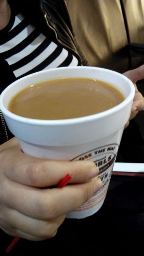 Náluk ez kicsit olyan,mint nálunk a tea, viszik papírpohárban a forró italt és melegíti őket.