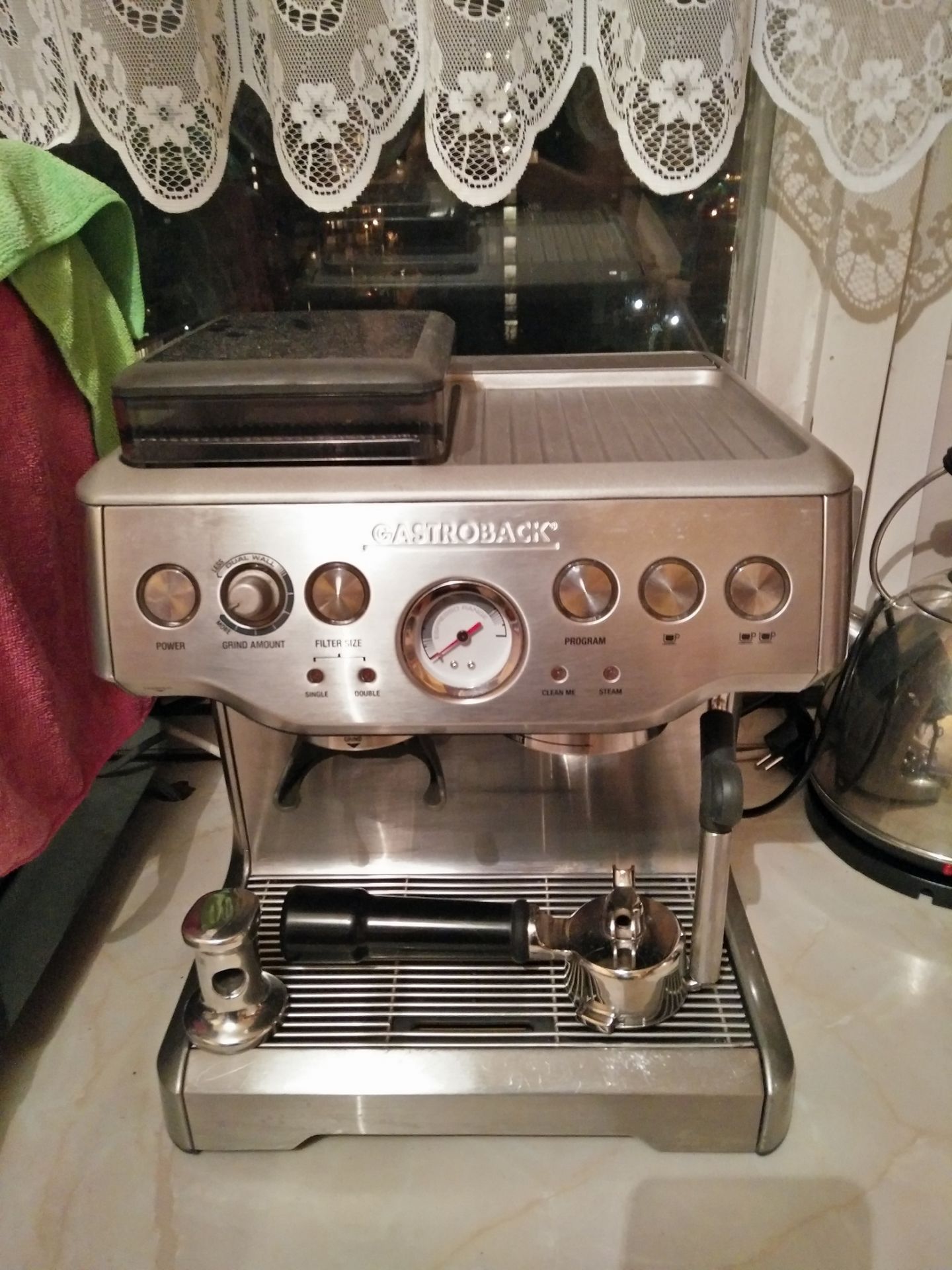 Gaggia Coffee + Cunill Marfil (ajándék taknyoltdoserless). A babtartály tetejét már nem találom, pedig emlékszem rá, hogy itt van valahol a lakásban. Új kések vannak benne, olyan 3-400 gramm kávé ment át rajta. A Gaggia-t teljesen szétkaptam, a linken találtok is pár képet. Kapott új szilikoncsöveket (kivéve a visszafolyó), Kar -és bojlertömítést. Illetve láttam még benne két o gyűrűt, az egyiket a bojler és a vízcső közötti kis darabban, a másikat meg a fejben lévő csavar alatt, azokat is kicseréltem. Próbáltam olyan szépre megcsinálni a bojlert, mint amiket szoktam itt látni, több kevesebb sikerrel szerintem megugrottam a problémát, bár nagyon picike vízkő maradt az aljában, de tovább nem akartam citromsavazni, mert szép állapotban van, nem kráteres. Gyári karral, szimpla és duplaszűrővel. Igény esetén lali.hu féle tamper (nem tudom, hogy most mennyi az ára, de új ár -30%). A rozsda már megkezdte.