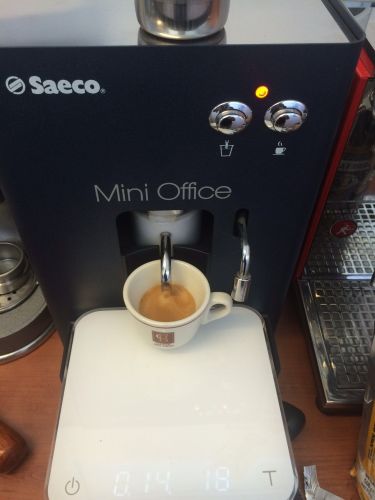 Gyakorlatlan podozóként relatíve hosszú passzív előmelegítés (kb 30 perec) után gyors egymásutánban toltam a Saeco gépen 4 adagot. A negyedik után már egészen Crema kinézetű anyag fedte a csészében levő italt és az íze is egyre inkább közelített ahhoz, ami a nyelvemen volt Belardi bácsitól. 7g kávéból 18g eszpresszó "húzódott" 14 kurta mp alatt.