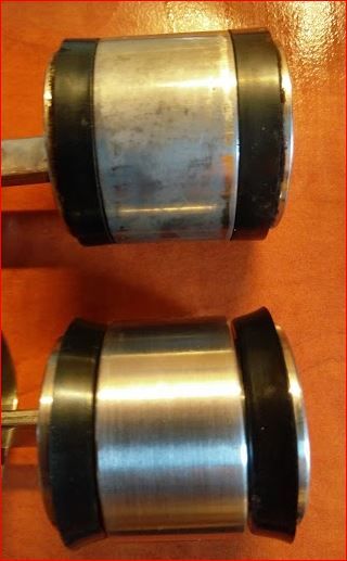 S ha már előszedtem bele is raktam a Francesco-s tömítést. Emlékszem rá, hogy Péternél megdöbbentően kicsi ellenállást jelentett a kar felemelése, ugyanakkor lefelé hozta a szokásost, most láttam miért. Nekem sajnos már csak az epdmből utángyárott tömítéseim maradtak (méretpontosak, ilyen volt az eredeti is), na ahhoz képest az újak úgy feszülnek a dugattyún, rossz volt ránézni.