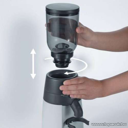 Na vagy én vagyok hülye vagy nem tudom de ha én beteszem az állító gyűrűbe a kávébabtartót egy mukkot nem lehet jobbra tekerni. Csak az állítógyűrűt és úgy rögződik.