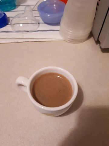 Kicsit lapos ízre de azért érezhető némi csokis/kakaós beütés, nem keserű, vastag crema bár relatív gyorsan odalett (a kép kb 1 perc elteltével készült).