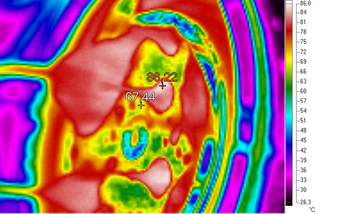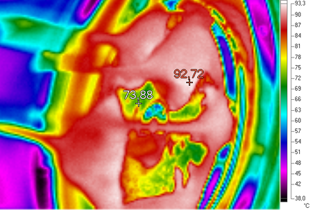 Na ma méregettem, 92 fok pid, 50 perc melegedés után. Első, amikor megindul a víz. Igazából feltételezem, hogy a legmelegebb pont a mérvadó, lehetetlen szögben a camera. Nem is tudom jól csinálom-e.