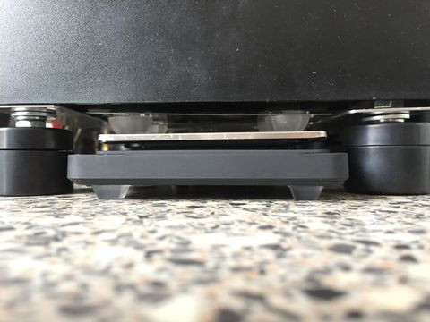 3. A szintező lábaknak, némi alsó lemez átalakításnak és a csepptálca speciális lábainak köszönhetően a 0,1g pontos mérleget a karba őrölt kávéőrlemény lemérése után a gép alá tudom tolni és csapolás közben a lefolyó kávé súlyát is egyszerűen tudom mérni úgy, hogy a mérleg így elfér és nem lesz vizes vagy kávécseppes.