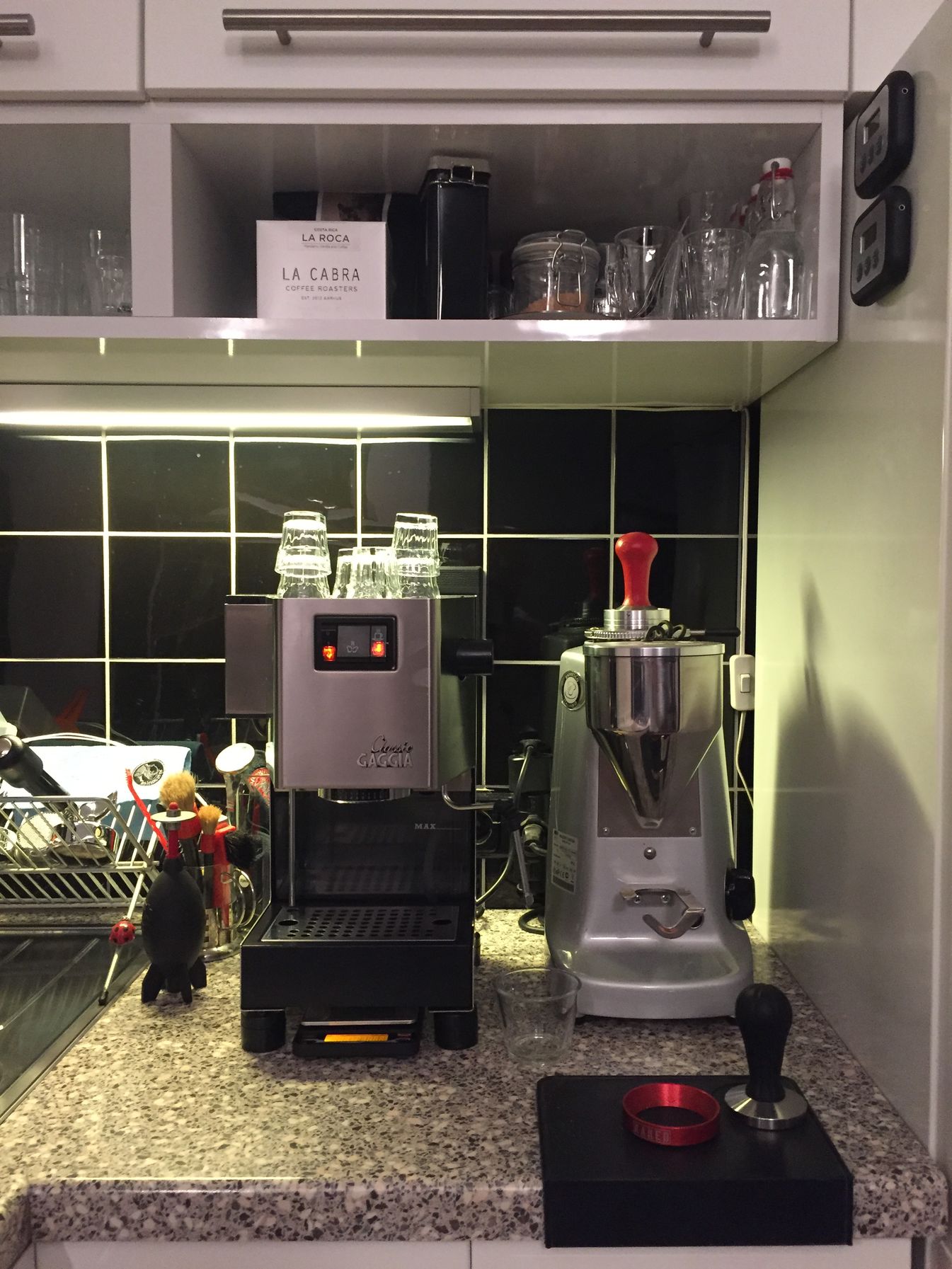 Otthon kimérem amennyi kell, 2-nél nem szoktam többet inni munkában. 18 grammot leőrlöm és elviszem,jól lezártan. Helyben már szemre felezem el. A DG Piccolo gép többet hoz ki így minőségi kávéval feltöltve, először miután rápróbáltam, erős kételyekkel persze meglepett hogy egész jó ízek is kijönnek. Utána macerás kicsit kiszedni, eltisztítani, de megéri, az tuti... Viszonylag olcsó alternatíva lehet amúgy ez is a budget usernek, ha a gépparkkal nem akar messze szárnyalni.