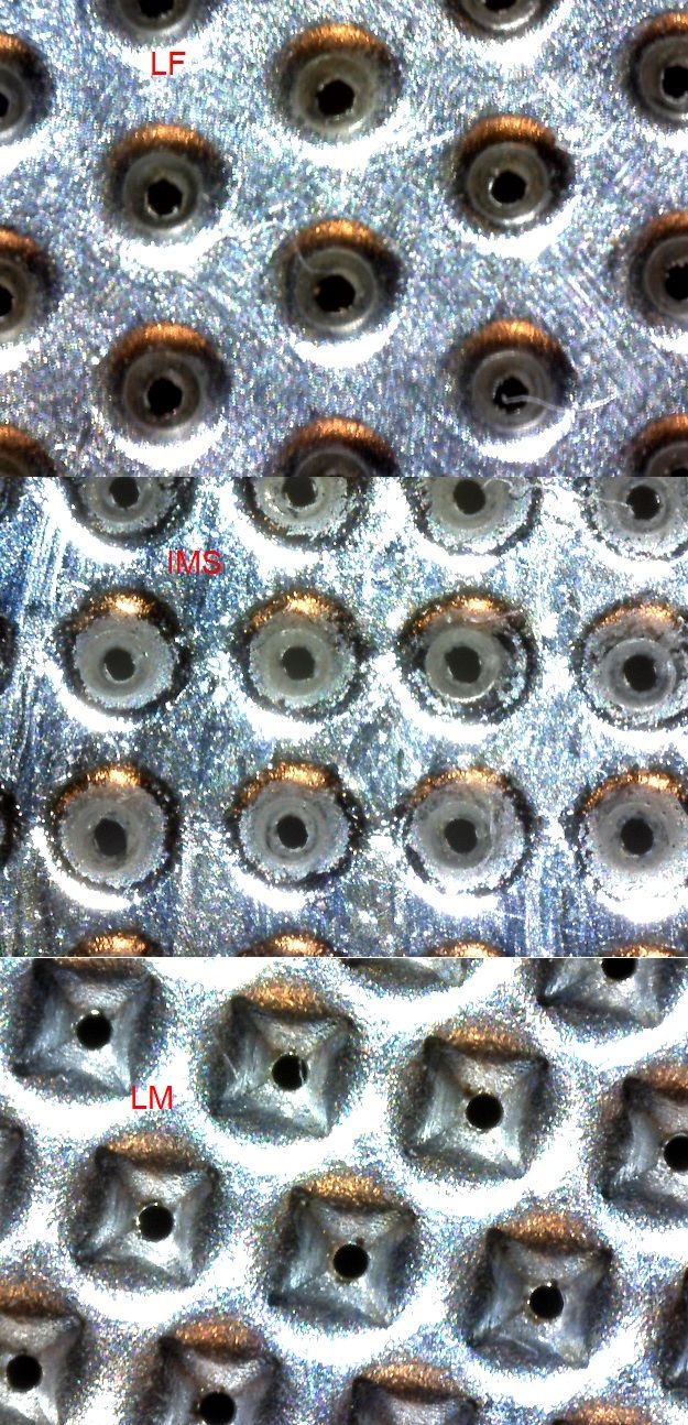 Így mikroszkóp alatt elég szembetűnő a különbség az IMS és az LM kosár között, pedig ugyanaz az árkategória, ha nem tévedek. De persze lehet, hogy ez nem jelent semmit. Egyébként számomra kicsit üresebb kávékat főztem az elmúlt napokban az IMS kosárral, most visszatéve az LM kosarat, számomra sokkal élvezhetőbb volt a kávé már az első csapolással (PY Sidamo).