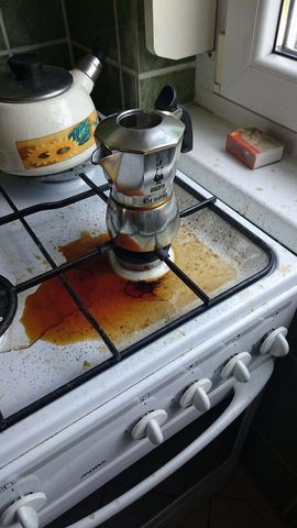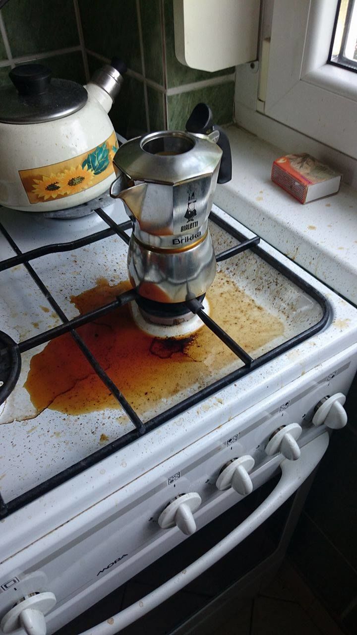 Nekünk is Brikka van. A mienk talán 1,5-2 éves lehet... Ahogy látom neked a két elem illesztése mentén kezdi el kikögöhni a kávét. Nem zár jól a tömítés. Időnként pici víz nálunk is kijön de ilyen kritikus sosem volt. A kavé lazán legyen benne és ne túl sok. A víz mennyiségére is érzékeny. Ha mércétől kicsit is eltérni már más eredményt ad.