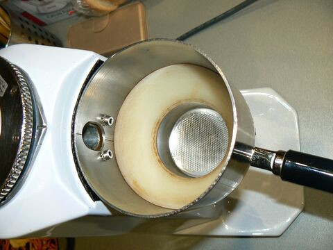 Fején találtad a szöget!Ha megnézed a fekete tölcsért, azért nem ér be a lyuk pereme a kosár peremén belülre,mert oda egy karika,benne meg szita volt applikálva.De azt tényleg kellett söpörni.Míg átkaristoltam,meg is őszültem.