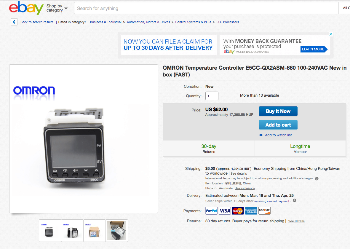Szinte mindenki ezt a kamu OMRON E5CC pidet árulja az ebayen. Az előlapján látszik hogy ez is kamu.